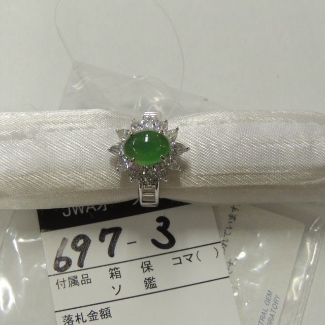 リング ヒスイ ダイヤ Pt900 10.50g 中ソ 石目:2.388 D1.96