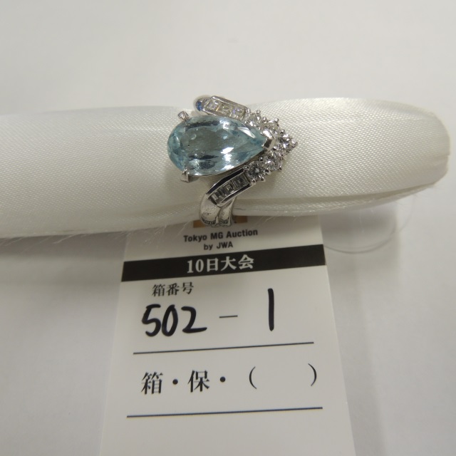 リング アクアマリン ダイヤ Pt900 13.70g 石目:AQ3.65 0.68