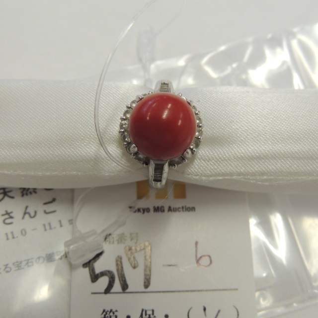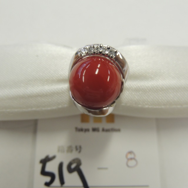 リング サンゴ 11.1mm ダイヤ Pt900 9.60g 中ソ 石目:D0.53