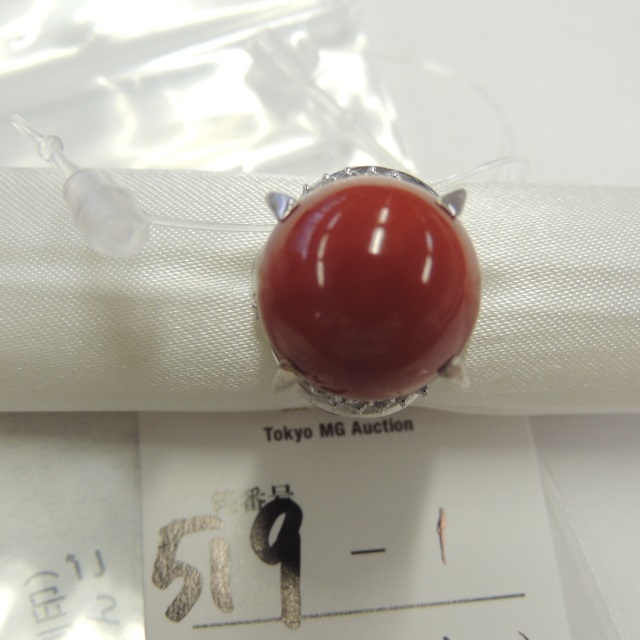 リング サンゴ 15.2mm ダイヤ Pt900 15.60g 中ソ 石目:D0.13