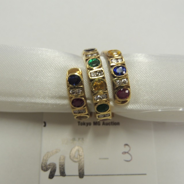 リング マルチ色石 ダイヤ K18 9.10g 石目:1.92 D0.30