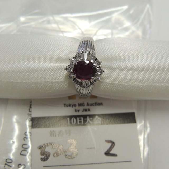 リング ルビー ダイヤ Pt900 6.70g 中ソ 石目:1.98 0.50