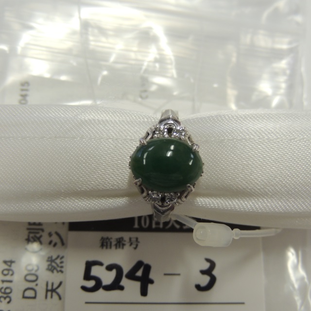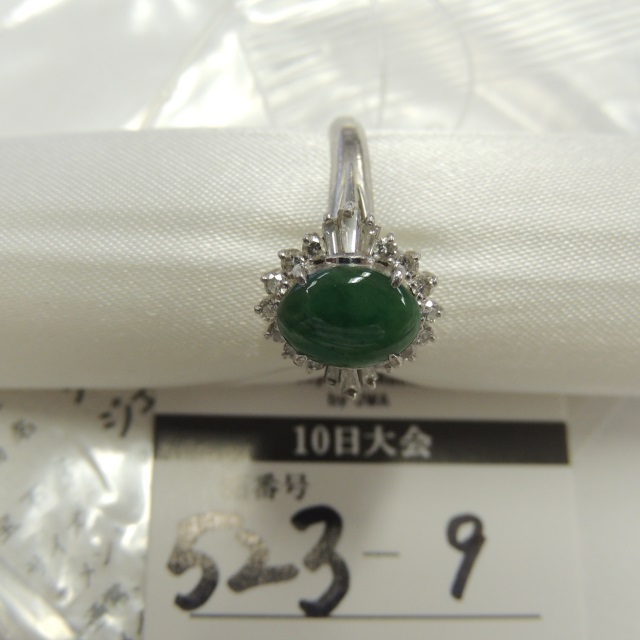 リング ヒスイ ダイヤ Pt900 6.20g 中ソ 石目:0.16