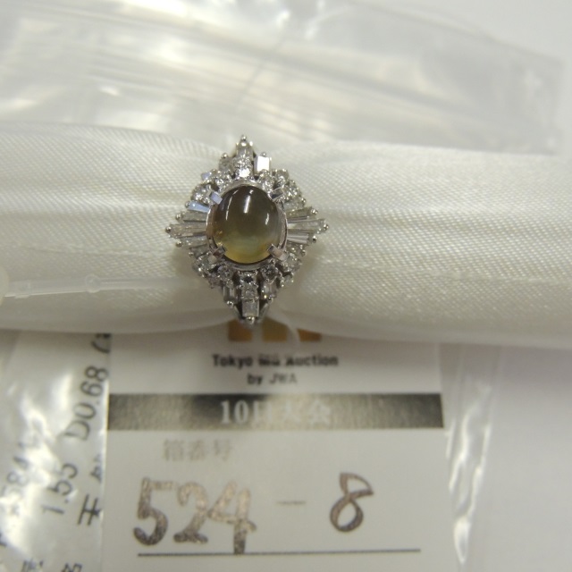 リング クリソベリルキャッツアイ ダイヤ Pt900 6.70g 中ソ 石目:1.55 D0.68