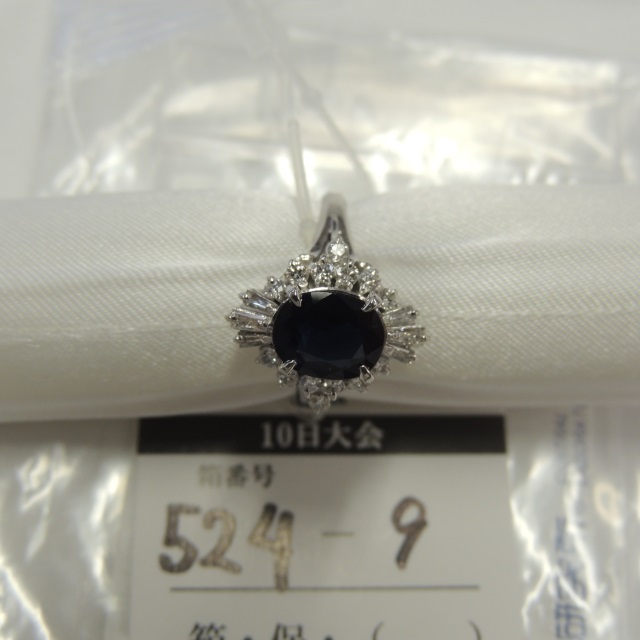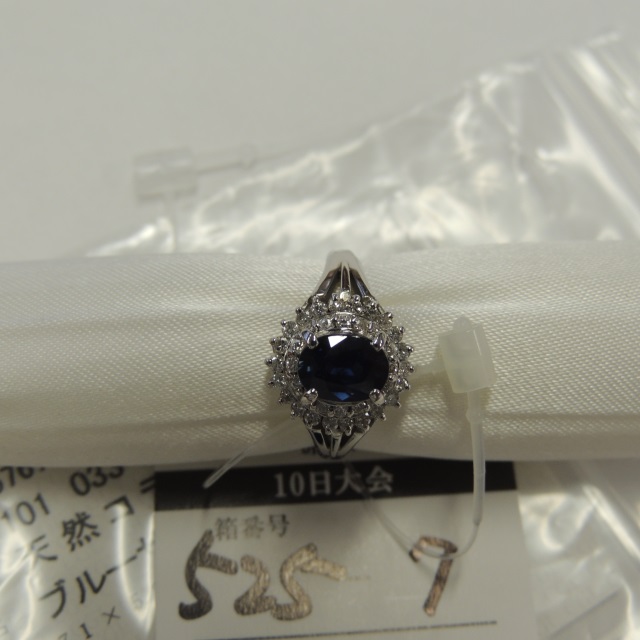 リング ブルーサファイヤ ダイヤ Pt900 6.30g 中ソ 石目:1.03 D0.40