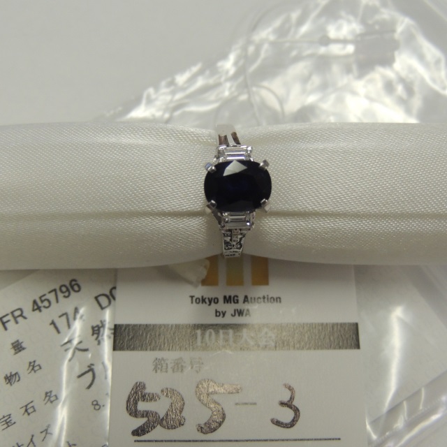 リング ブルーサファイア ダイヤ Pt900 6.10g 中ソ 石目:3.57 0.42