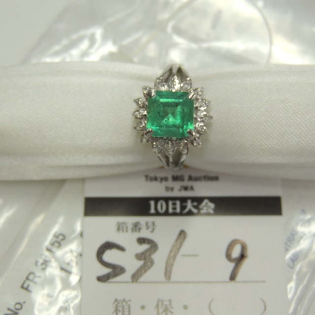 リング エメラルド ダイヤ Pt900 4.70g 中ソ 石目:1.54 0.10
