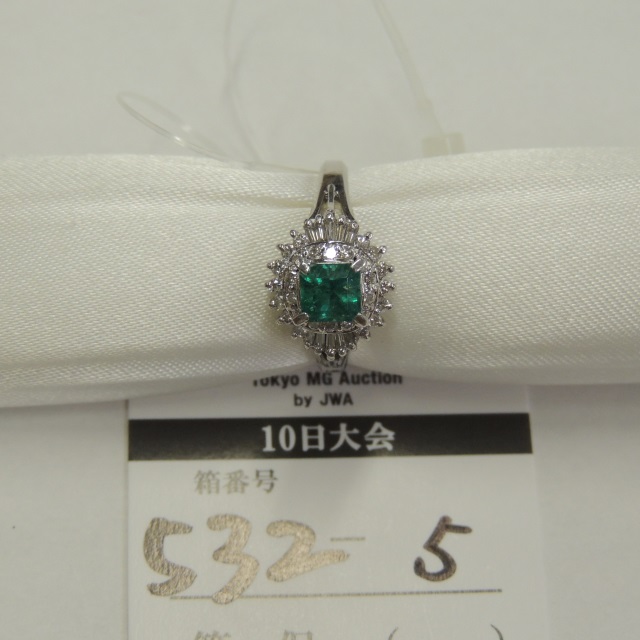 リング エメラルド ダイヤ Pt900 4.30g 石目:0.53 D0.302