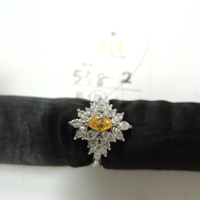 リング ファンシーインテンスイエローオレンジダイヤ ダイヤ Pt900 6.10g 鑑 石目:D0.347 D1.16