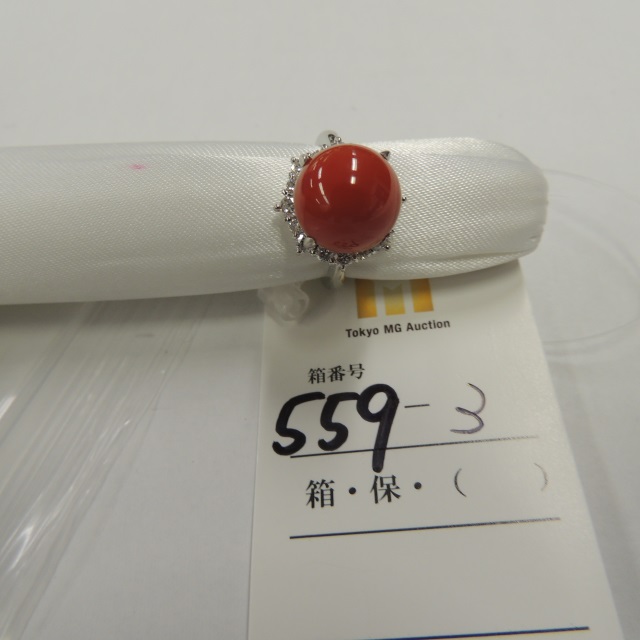 リング サンゴ 11.1mm 充填ダイヤ Pt900 8.40g GRJソ 石目:0.68