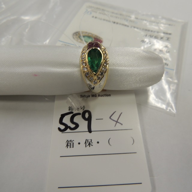 リング エメラルド ルビー ダイヤ K18/Pt900 5.70g GRJソ 石目:0.70 0.45 0.29