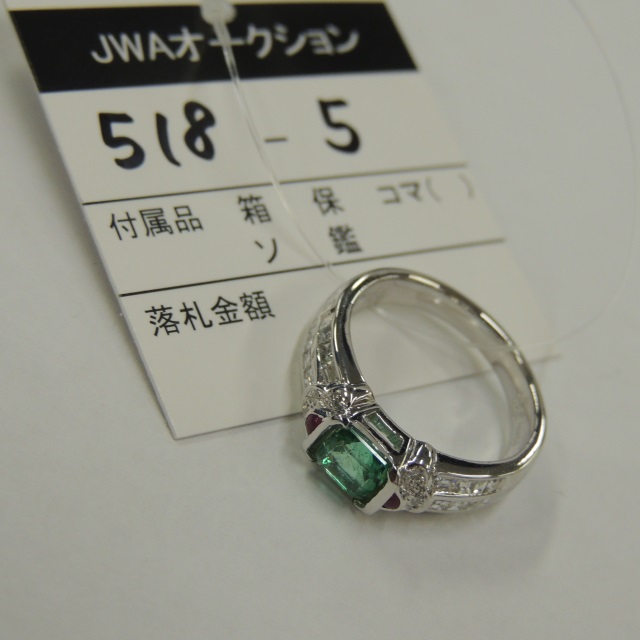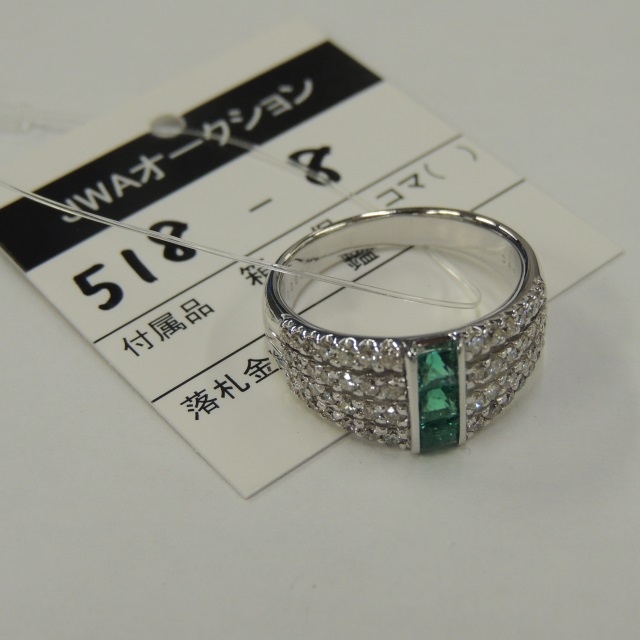 リング エメラルド ダイヤ Pt900 10.00g 石目:E0.46 D0.82