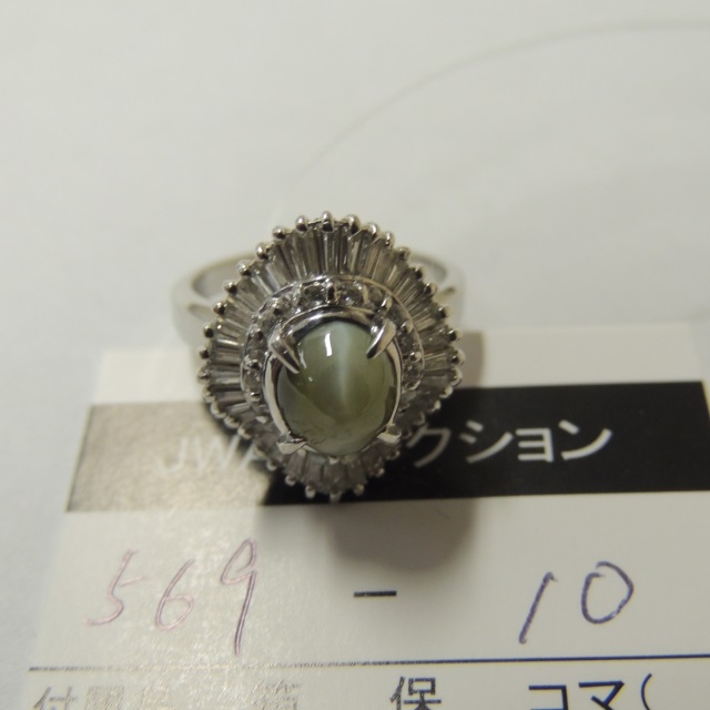 リング クリソベリルキャッツアイ ダイヤ PT900 10.00g 鑑 石目:3.11 D0.98