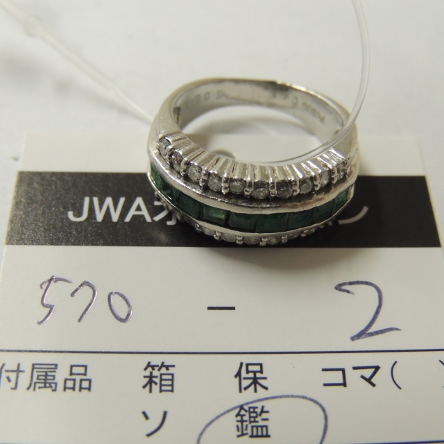 リング エメラルド ダイヤ PT900 8.20g 鑑 石目:MD0.4 E0.6
