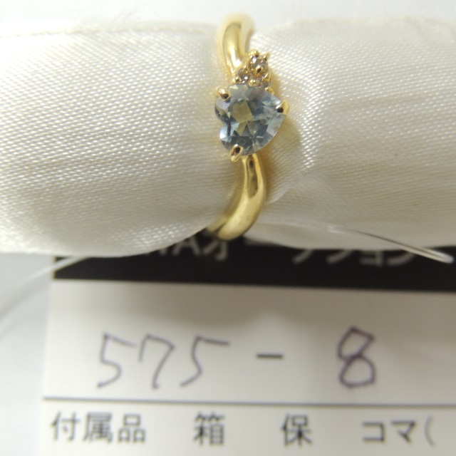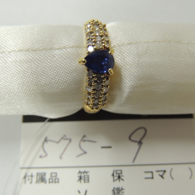 リング ペアシェイプ 青色石 K18 4.10g 石目:0.48 0.35