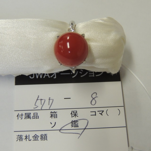 リング 珊瑚 20.8mm 15.1mm ダイヤ K18WG 31.10g 鑑 石目:D2.24