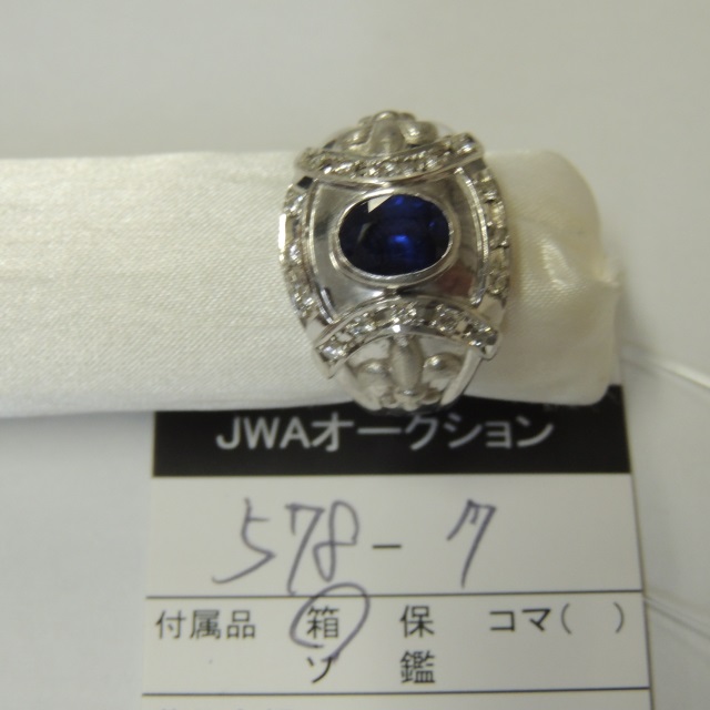 リング ユリモチーフ カレッジ サファイア ダイヤ Pt900 30.90g ケース 石目:S1.84 D0.33