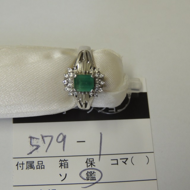 リング エメラルド ダイヤ Pt900 5.30g 鑑 石目:0.43 D0.19
