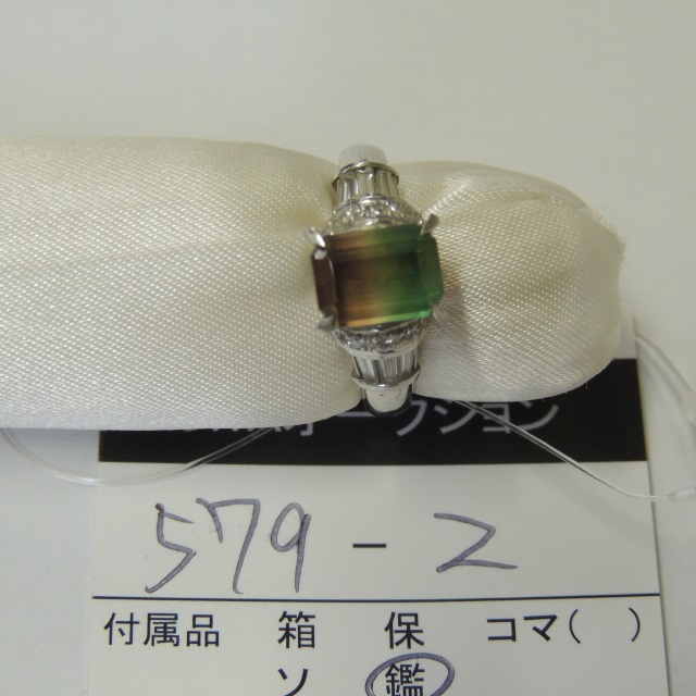 リング トルマリン ダイヤ Pt900 6.40g 鑑 石目:2.01 0.35