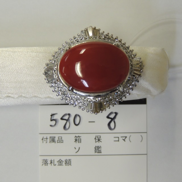 リング 珊瑚 Pt900 6.60g 鑑 石目:D0.15