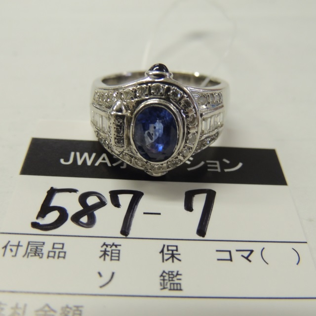 リング ブルーサファイア ダイヤ Pt900 14.30g 石目:S1.90/0.35 D0.33 D0.41