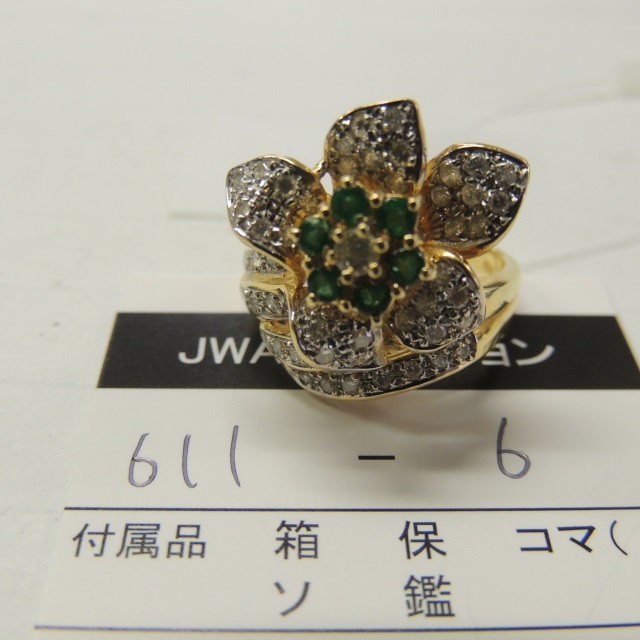 リング エメラルド ダイヤ 花 K18 9.50g 石目:E0.33 D0.73