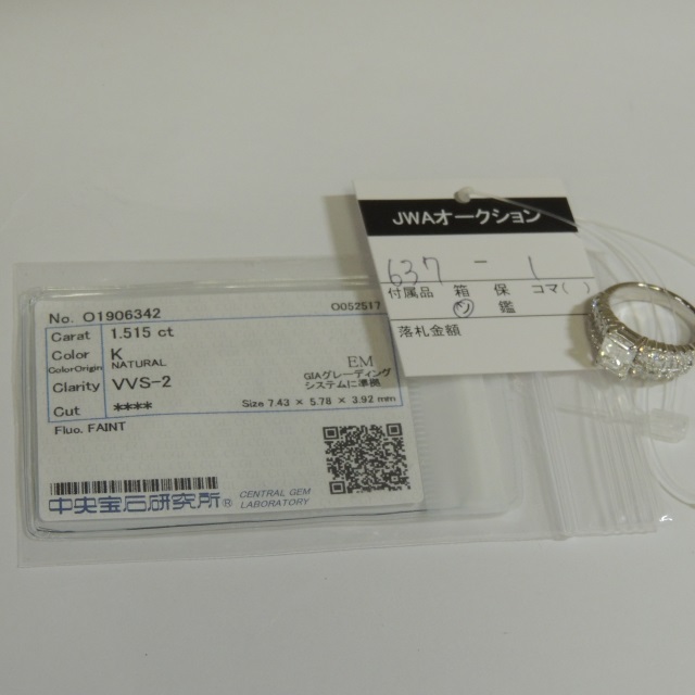 リング ダイヤ Pt900 9.70g 中ソ 石目:D1.515 D1.2