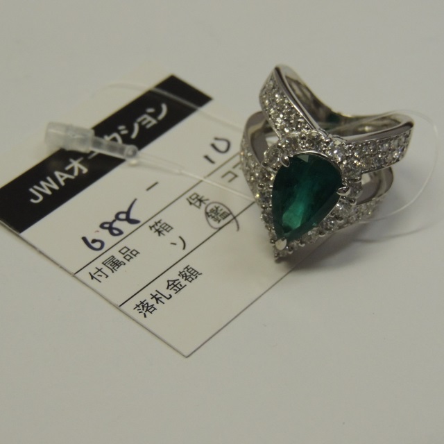 リング エメラルド ダイヤ Pt900 18.00g GRS鑑 石目:E3.07 D2.09