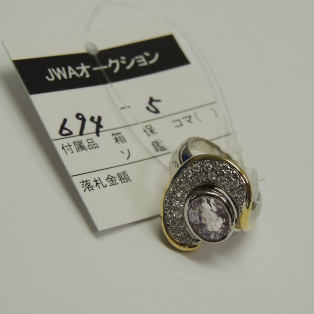 リング クンツアイト ダイヤ Pt900/K18 15.00g 石目:K3.13 D0.41