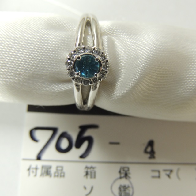 リング パライバトルマリン ダイヤ Pt900 4.90g 鑑 石目:0.19 0.16