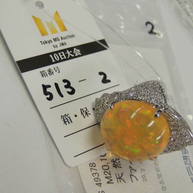 リング ファイヤーオパール ダイヤ Pt900 20.50g 中ソ 石目:M20.1 D1.06 R2.52