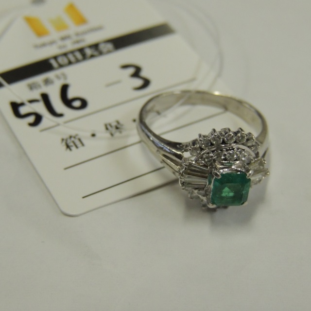 リング エメラルド ダイヤ Pt900 4.10g 石目:E0.72 D0.4