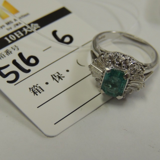 リング エメラルド ダイヤ Pt900 7.90g 石目:E1.14 D0.63