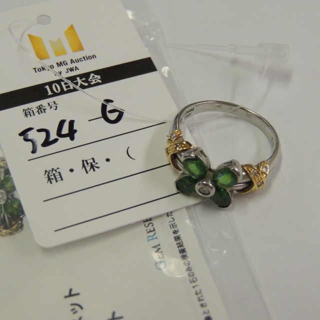 リング グリーンガネット ダイヤ Pt900/K18 7.10g GRJソ 石目:FD0.150