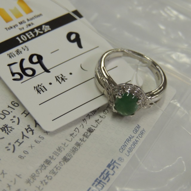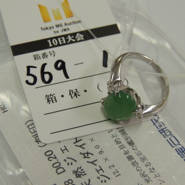 リング ヒスイ Pt900 6.70g 中ソ 石目:3.88 D0.20