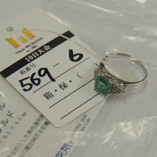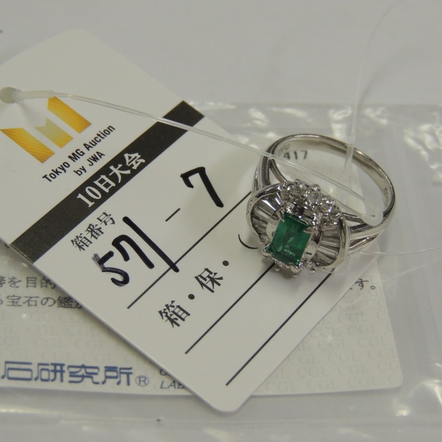 リング エメラルド ダイヤ Pt850 7.00g 中ソ 石目:0.62 D0.80