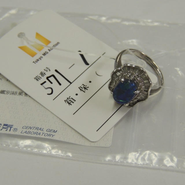 リング ブラックオパール ダイヤ Pt900 7.90g 中ソ 石目:1.53 0.81