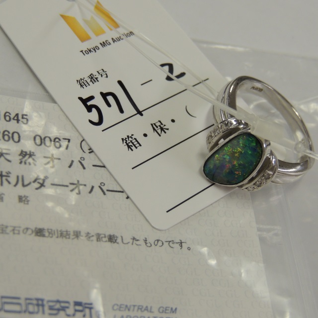 リング ボルダーオパール ダイヤ Pt900 11.50g 中ソ 石目:2.60 0.067