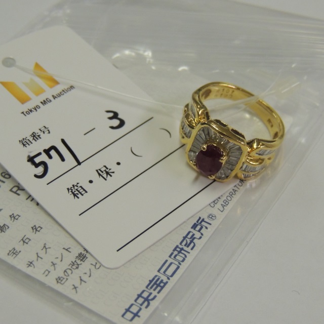 リング ルビー ダイヤ K18 7.20g 中ソ 石目:R1.07 D1.20