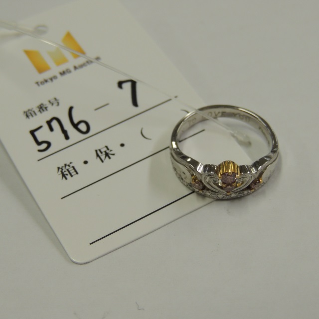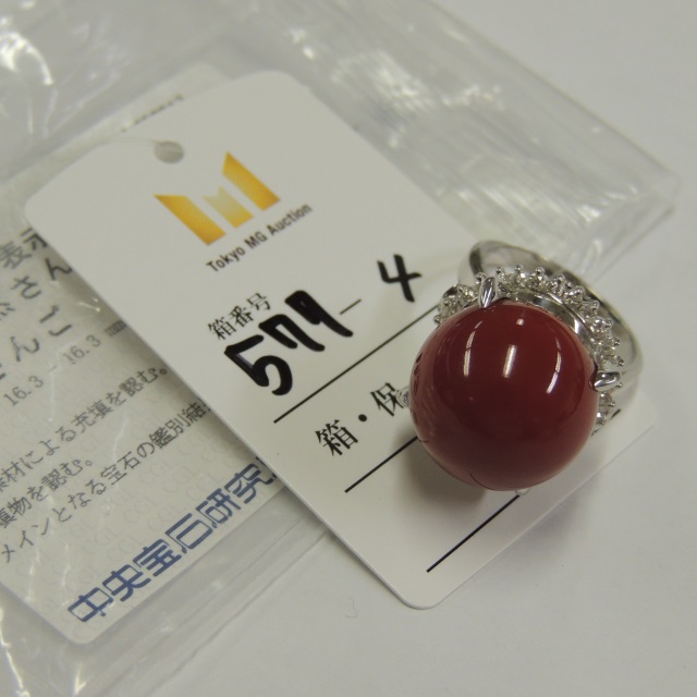 リング サンゴ 充填 ダイヤ Pt900 17.80g 中ソ