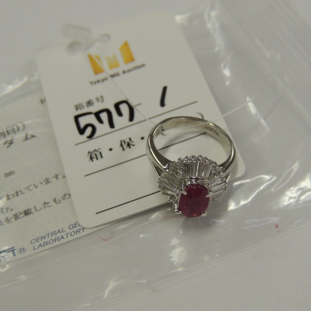 リング ルビー 含浸 ダイヤ Pt900 6.30g 中ソ 石目:1.69 D0.72