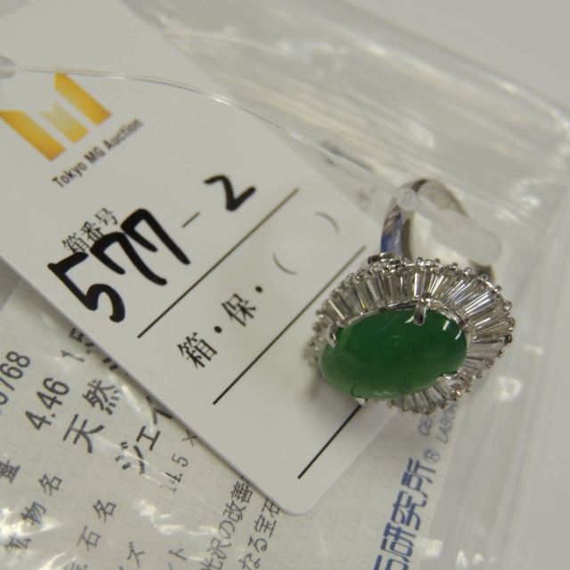 リング ヒスイ ダイヤ Pt900 10.40g 中ソ 石目:4.46 1.51
