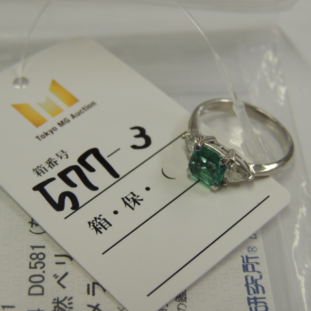 リング エメラルド ダイヤ Pt900 4.70g 中ソ 石目:1.04 D0.581