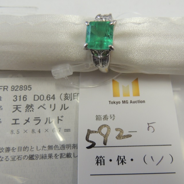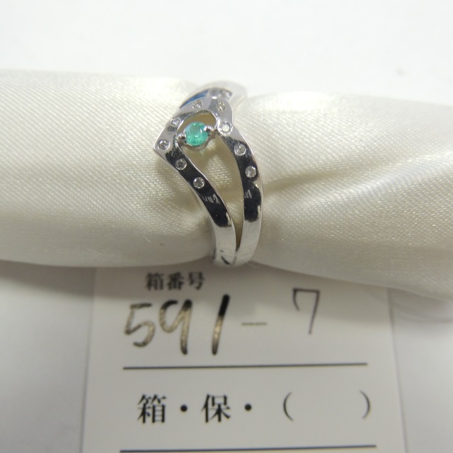 リング エメラルド ダイヤ 2P取れ PT900 8.90g 中ソ 石目:E3.16 D0.64