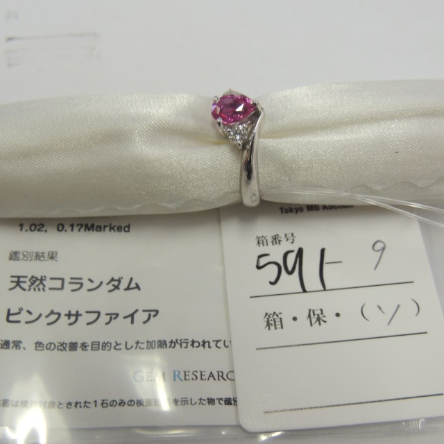 リング ピンクサファイア ダイヤ PT900 5.40g GRJソ 石目:S1.02 D0.17