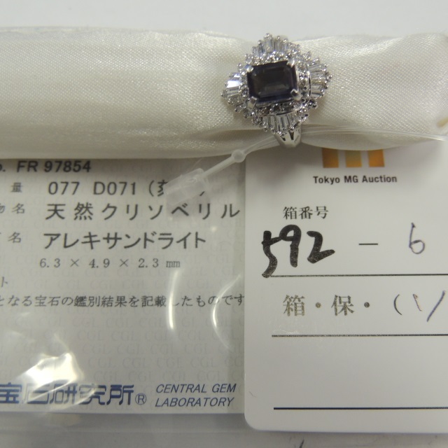 リング アレキサンドライト ダイヤ PT900 5.50g 中ソ 石目:A0.77 D0.71
