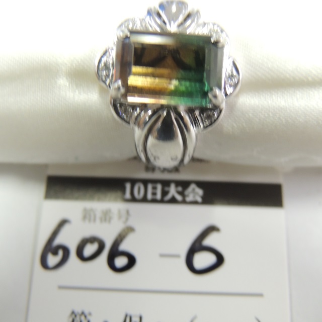 リング バイカラートルマリン ダイヤ Pt900 15.50g 全鑑 石目:5.70 0.08