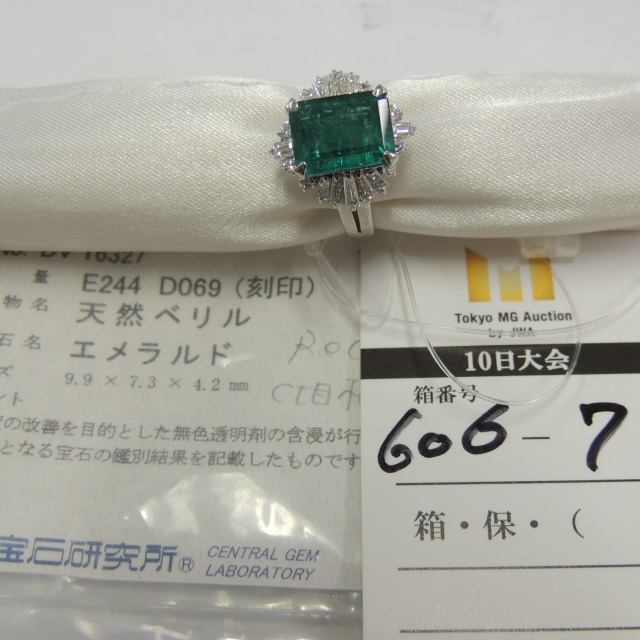 リング エメラルド ダイヤ Pt900 16.00g 石目:7.31 1.926