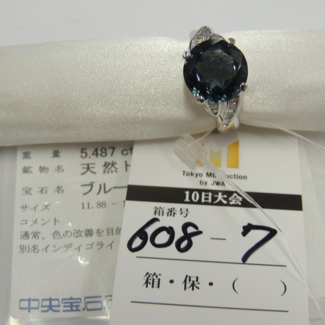 リング インディゴライト ダイヤ Pt900 9.10g 中ソ 石目:5.487 0.26