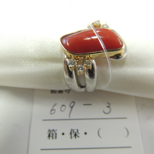 リング サンゴ ダイヤ Pt900/K18 11.20g 石目:D0.21